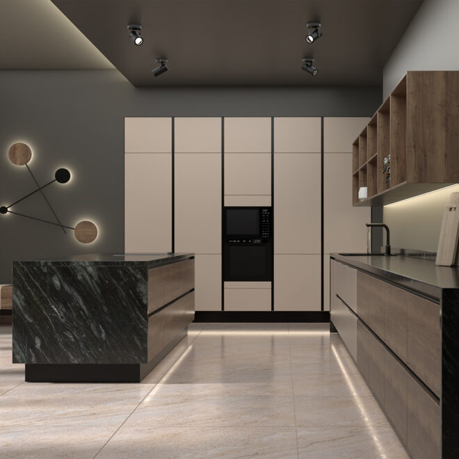 Hydra thrives on a creative blend of style and color. Its vibrant hues and intricate details are the interior signature marks that our experts consistently aim to deliver. The one-wall design, complemented by a multifunctional island, ensures practicality without compromising on the aesthetics.