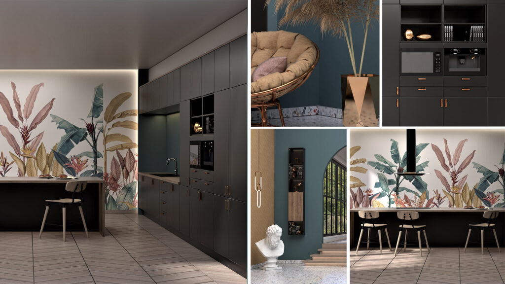 Despite the vibrant colors and intricate details, Hydra maintains a serene atmosphere, thanks to its carefully chosen neutral colors. These tones bring a sense of calm, creating a homely vibe and ensuring the kitchen remains a welcoming and comforting space.
